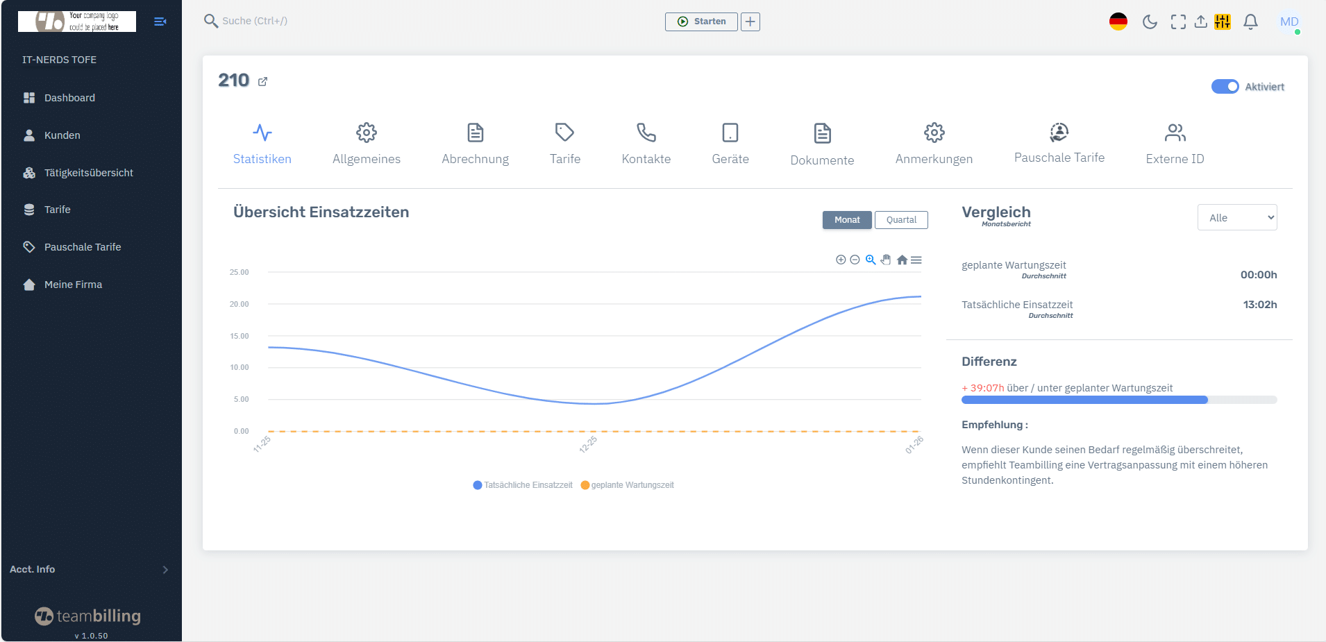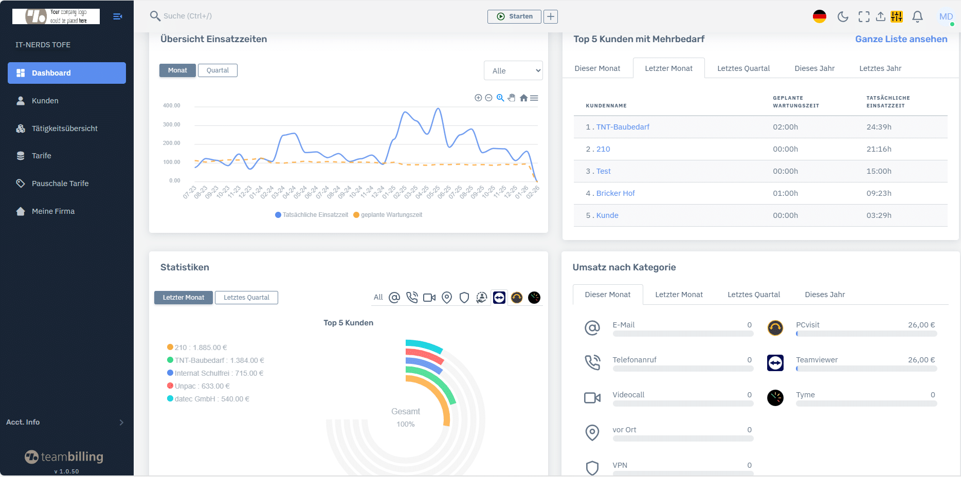 Leistungen sind klar dokumentiert und nachvollziehbar – eine solide Basis für professionelle Kundenkommunikation und interne Auswertungen.
